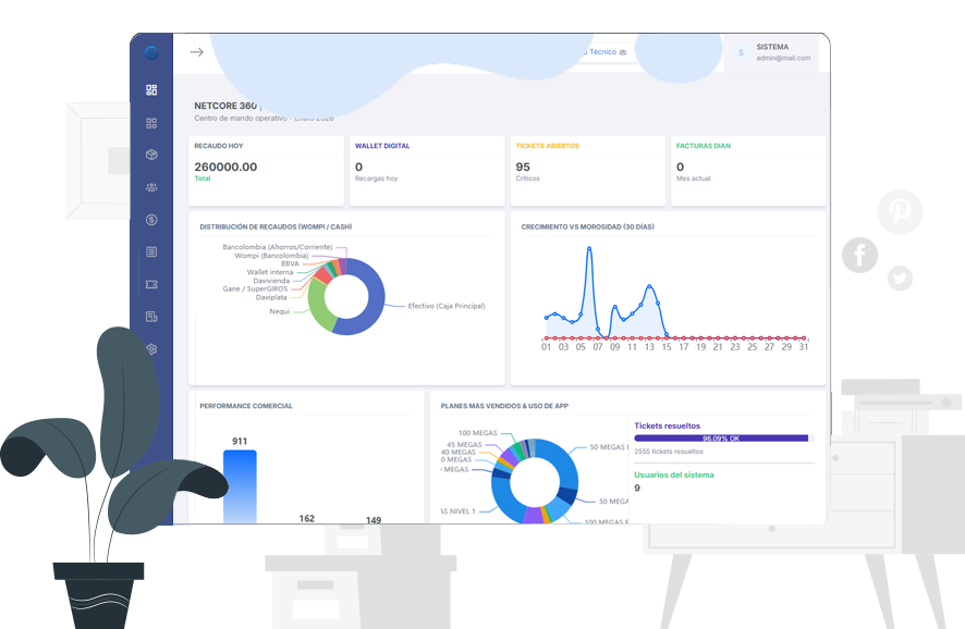 No más cierres de mes traumáticos. NetCore360 genera facturas electrónicas, procesa débitos automáticos y envía recordatorios por WhatsApp. Si no pagan, el sistema suspende; si pagan, el sistema activa. Así de simple.